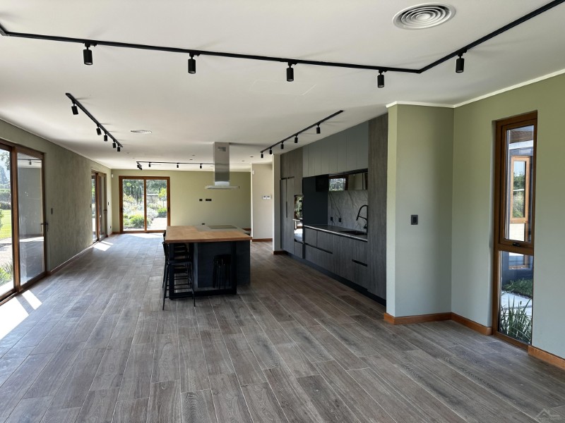 Casa estilo mediterráneo en venta a estrenar, 300 m2 construidos y una superficie total de 5.000 m2. Cuenta con 4 dormitorios y 4 baños, los cuales destacan por sus amplios espacios. Utiliza el concepto de cocina abierta, inserta en un amplio espacio de living comedor, cuenta con una sala de estar, logia, bodega y estacionamiento descubierto para 2 vehículos.